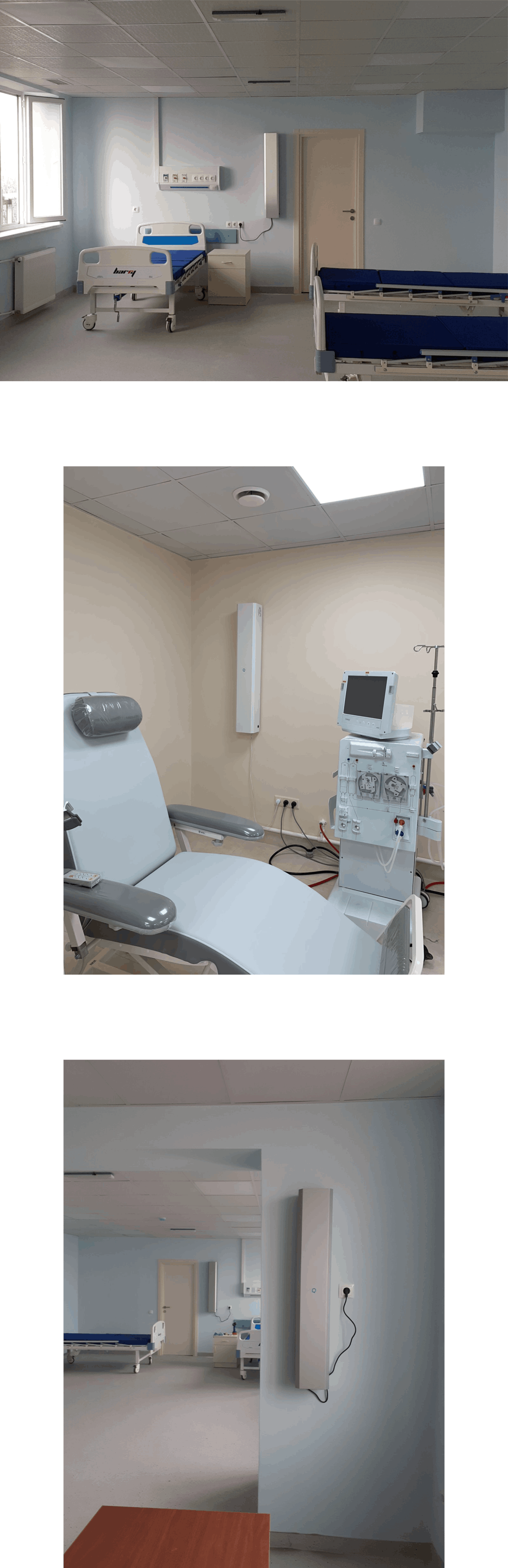 Устройство можно установить двумя способами. стационарные, от стены до потолка, а также на мобильной платформе, что позволяет транспортировать бактерицидный излучатель в разные места, անմիջապես направлять излучение непосредственно на обеззараживаемые объекты (медицинские диваны, кровати, диагностическое оборудование, так далее.).
