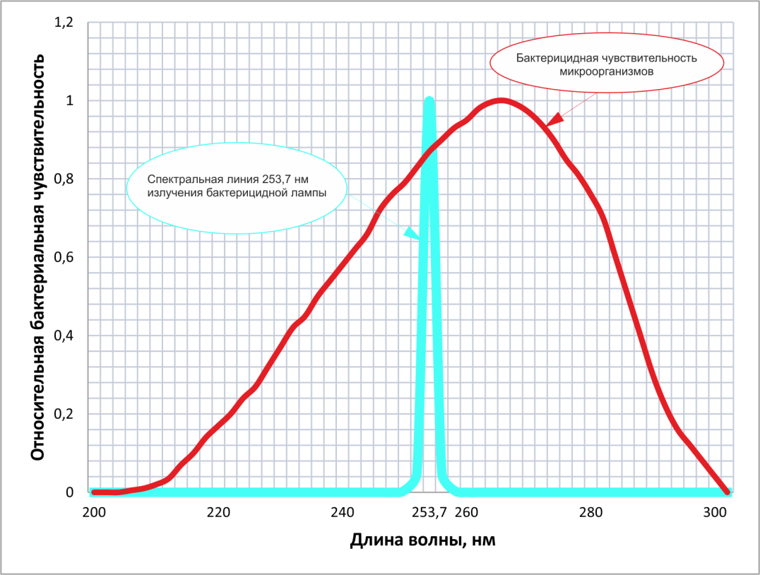При воздействии ультрафиолетового (УФ) излучения на живые микроорганизмы, имеется оптимальный для их инактивации диапазон длин волн от 250 до 280 нм.